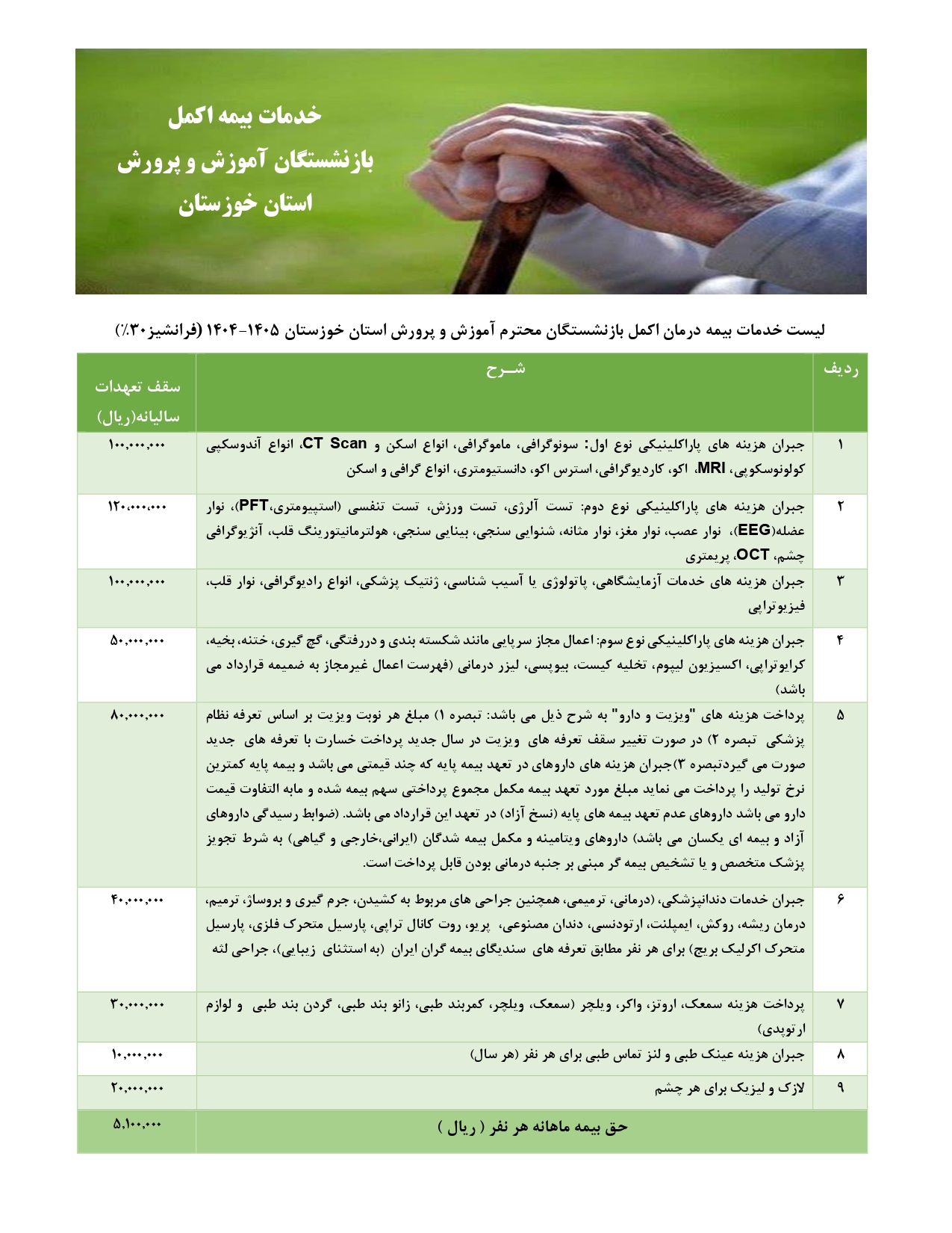 تعهدات بیمه اکمل بازنشستگان آموزش و پرورش استان خوزستان