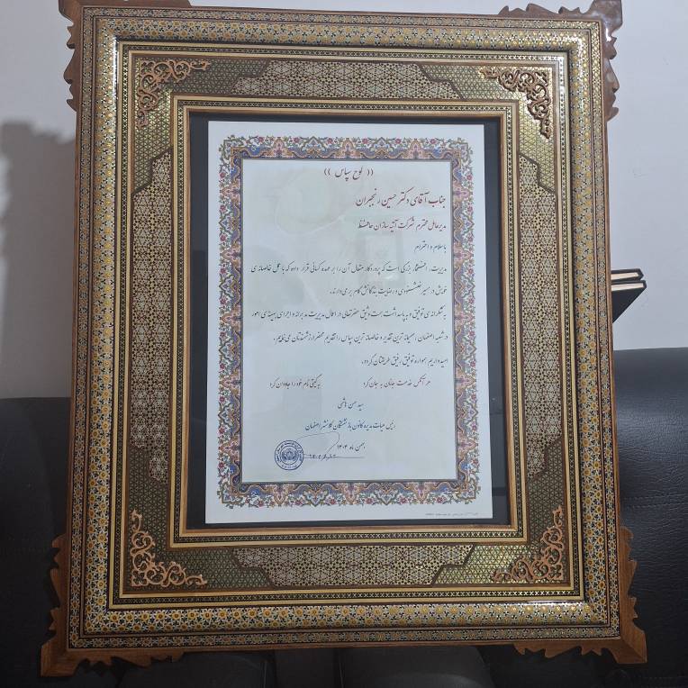 رئیس هیئت مدیره کانون بازنشستگان تامین اجتماعی اصفهان، با اهدای لوح سپاس از دکتر رنجبران مدیرعامل شرکت آتیهسازان حافظ قدردانی کرد.