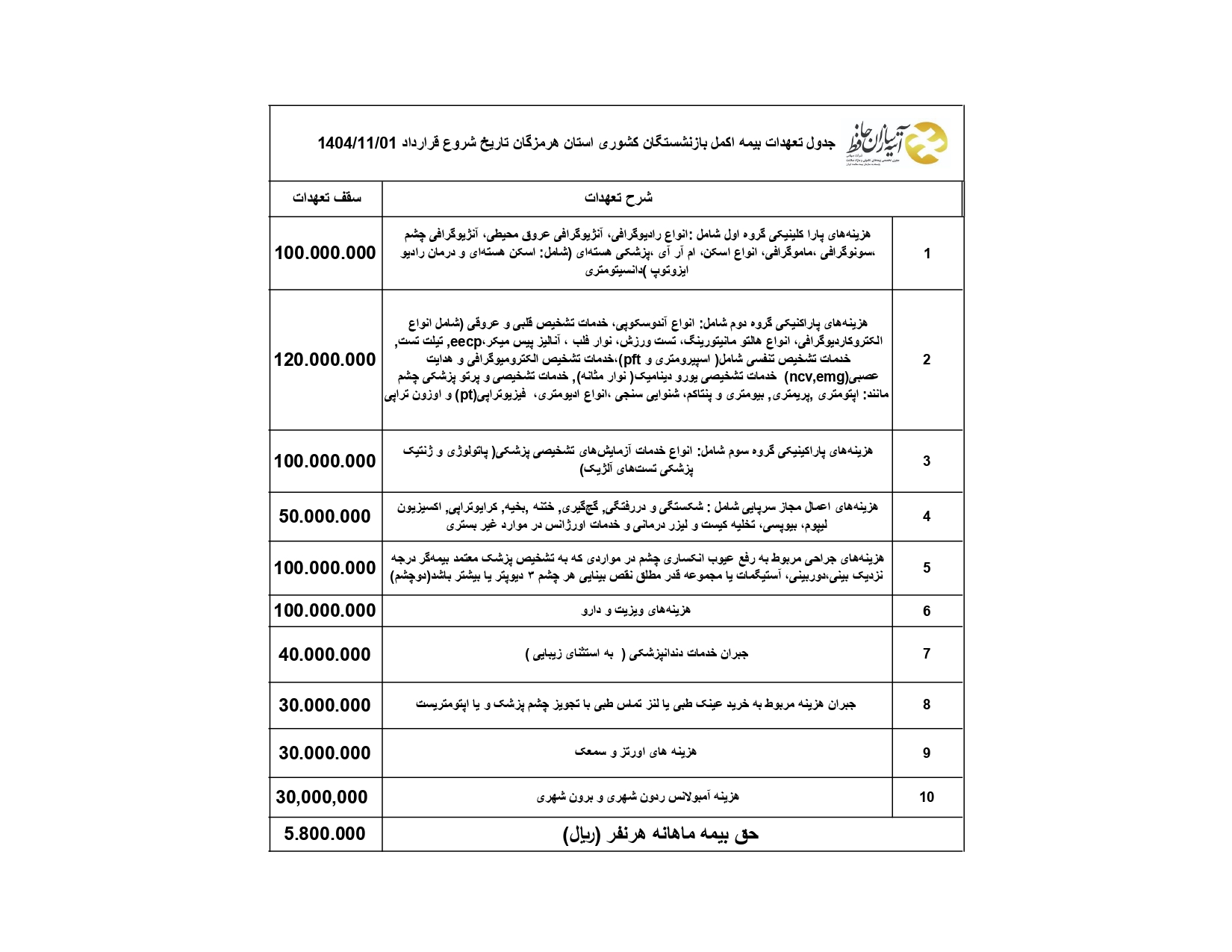 برای چهارمین سال متوالی قرارداد بیمه اکمل بین آتیه سازان حافظ و روسای کانون های بازنشستگان صندوق کشوری استان هرمزگان ( بازنشستگان ادارات آموزش و پرورش، دانشگاه علوم پزشکی، استانداری هرمزگان، جهاد کشاورزی و مسکن و شهر سازی) منعقد شد.